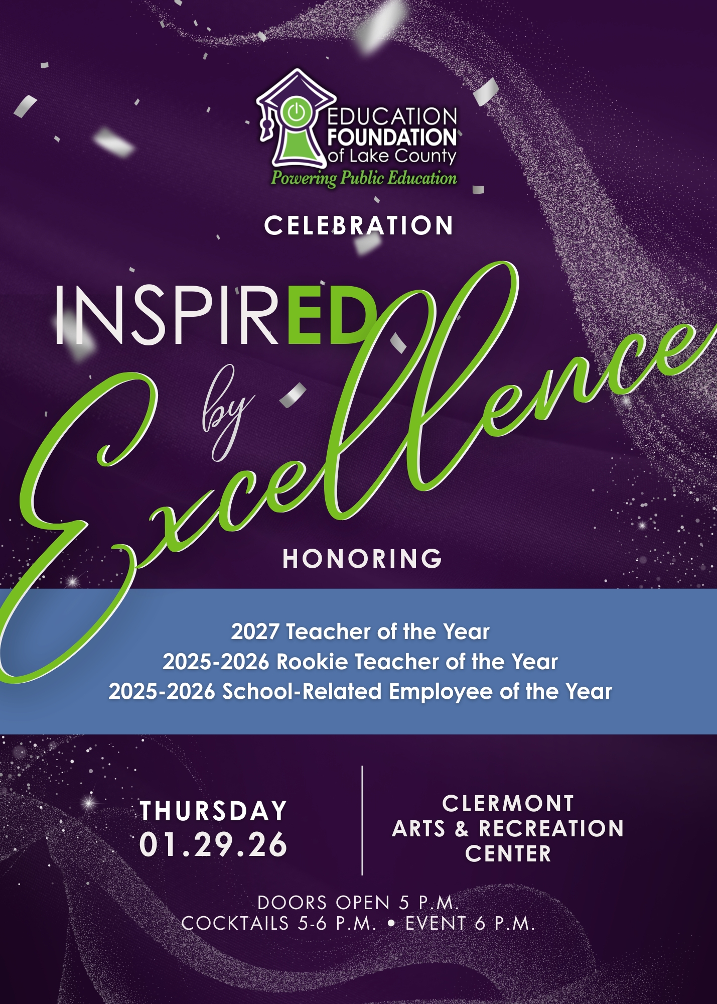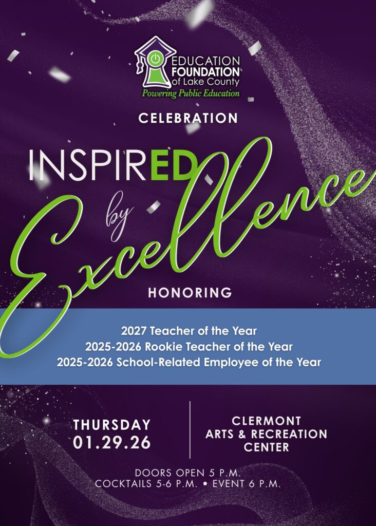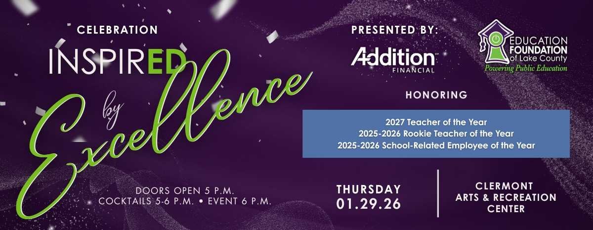 You are invited to learn more about sponsorship opportunities for the Celebration InspirED by Excellence by visiting our events page or e-mailing us at edfoundation@lake.k12.fl.us.